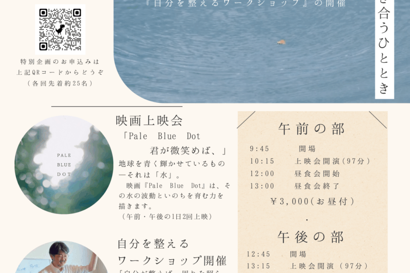 午後の部は、映画上映会後、甘味のひとときを挟んで、自分を整えるワークショップを開催します。
